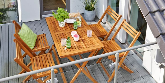 VINKKI! Kokoontaittuvien tuolien ominaisuutta kannattaa hyödyntää, jos kalustosi on taivasalla. Taita tuolit kokoon nojaamaan pöytään aina silloin, kun ne eivät ole käytössä, näin mahdollinen sadevesi liukuu tuoleista pois, eikä vesi jää kuluttamaan pintaa.