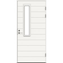 - Kiinnitä oveen vedin ja säädä lukituksen väljyyttä ja kireyttä karmissa olevan rullasalvan säätöruuvista.