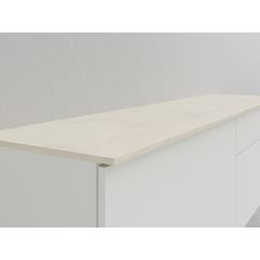 Peitä seuraavaksi työtason sahatut päädyt reunalistoilla. Kun hankit työtasoksi työstettävän levyn BAUHAUSista, löydät kätevästi samalla kertaa myös levyä täydentämään sopivat, levyn kanssa saman sävyiset reunalistat. Kiinnitä reunalistat työtason päätyihin tavallisella silitysraudalla. Paina ensiksi listaa silitysraudalla kohta kohdalta, ja silitä sitten lista vaakasuoraan koko sen pituudelta.